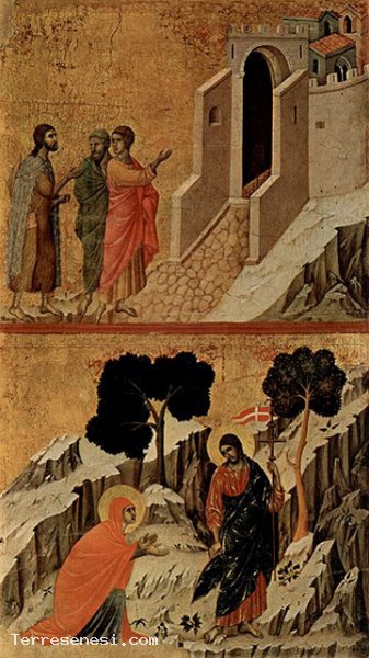 "Cristo e i pellegrini verso Emmaus e L'Apparizione di Cristo alla Maddalena (Noli me tangere)" è un dipinto autografo di Duccio di Buoninsegna appartenente al registro principale (verso) della Maestà del Duomo di Siena, realizzato con tecnica a tempera su tavola nel 1308-11, misura 102 x 57 cm. ed è custodito nel Museo dell'Opera del Duomo di Siena.