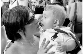 La giovanissima famiglia Degortes, ospite di amici a Siena. Fra gli altri presenti, ci ...