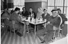 Pausa pranzo per i ferrovieri addetti all'officina locomotive di Siena. Fra i prese...