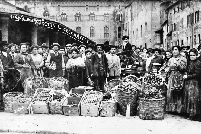 Il primo è la scritta aggiunta a mano sulla lastra che riguarda il nome della ditta, subito sotto la tettoia del Tartucone. Potrebbe trattarsi di una cartolina prodotta per pubblicizzate la rivendita di Orto-Frutta.