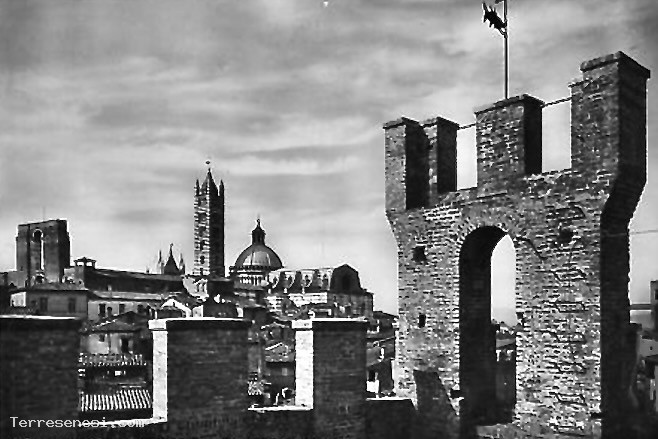Non sappiamo quale copertura esista sul tetto e sulle torrette del Palazzo Comunale, ma il fotografo è riuscito a raggiungerlo e a scattare una bella foto.