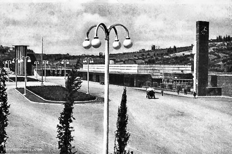 1938 - La Nuova Stazione Ferroviaria con lampioni e cipressi Siena
