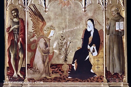 Annunciazione, San Pietro, Crocifissione di Cristo, e San Paolo Siena