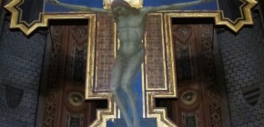 Nella grande tavola principale il posto d'onore, al centro, è dato dalla Crocefissione, di...