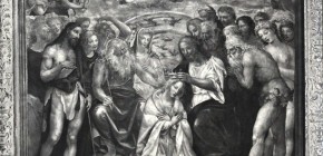 Olio su tavola, misure in cm.: Altezza 176, Larghezza 181...