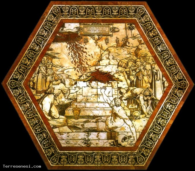 028 Tarsia pavimentale dell'Esagono centrale - Sacrificio di Elia Siena