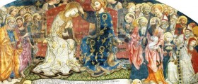 In 1444, at the height of professional fortune, Domenico di Bartolo won the commission to fresco of the Coronation of the Virgin in the room came a public building, which sets only (some have their heads of angels and saints and possibly cardboard) ; the work was completed and signed in 1445 by Sano di Pietro. The suspension of work on public building in the middle of the fifth decade can be hypothetically attributed to poor health.