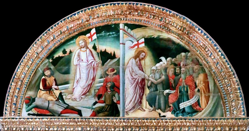 The lunette, meanwhile, depicts the Resurrection and the Descent of Christ into Limbo.