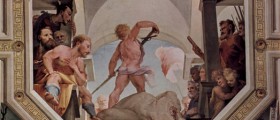 Una delle scene di giustizia romana affrescata sul soffitto della Sala del Concistoro del Palazzo Pubblico a Siena da Domenico Beccafumi tra il 1529-1535. Plinio il Vecchio, Libro 34, capitolo 15: "Trovo che il cast prima immagine in bronzo a Roma è stato quello di Cerere, era pagato dalla proprietà di Spurio Cassio, che fu giustiziato dal padre proprio quando ha cercato di farsi re ".