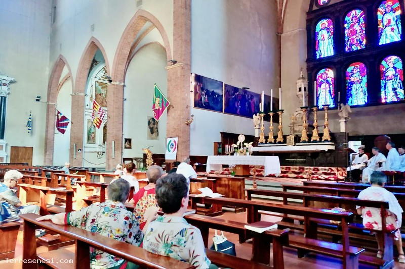 La Basilica di San Domenico è una delle più importanti chiese di Siena e si trova in Via Camporegio. La chiesa fu innalzata nel 1226-1265, ma nel corso del Trecento il complesso fu ampliato nelle forme gotiche che vediamo ancora oggi. La vasta architettura in mattoni tipica degli ordini mendicanti mostra sulla sinistra il campanile sbassato nel 1798 in seguito al sisma e presenta una pianta a croce egizia con amplissima navata, coperta a capriate e transetto con alte cappelle. L'ingresso si trova all'inizio del fianco sinistro della chiesa, in quanto la facciata è occupata dalla struttura sopraelevata della cappella delle Volte, quest'ultima è un antico luogo di preghiera delle Terziarie Domenicane dette Mantellate e legato a numerosi episodi di santità di Caterina da Siena. Nella prima campata di quest'ambiente notiamo la Canonizzazione di Santa Caterina di Mattia Preti, affiancata da due dipinti firmati e datati 1602 da Crescenzio Gambarelli, autore pure, nella parete adiacente, della Morte della Santa e della Santa che recita l'uffizio con Cristo (1602), collocate ai lati dell'Apparizione di Caterina a Santa Rosa da Lima di Deifebo Burbarini. Sulla parete di fondo si staglia l'affresco di Andrea Vanni con Caterina e una devota, veritiero ritratto della santa. Negli altari della parete sinistra della navata si trovano la Madonna col Bambino di Francesco di Vannuccio, incorniciata da una tavola del Sodoma con l'Eterno e Santi e completata dalla predella con quindici Storie neotestamentarie riferite ad Antonio Magagna; il Sant'Antonio Abate che libera una indemoniata di Rutilio Manetti; lo Sposalizio mistico di Santa Caterina d'Alessandria di Sebastiano Folli; il San Giacinto che salva da un incendio una statua della Vergine e un ostensorio di Francesco Vanni. Nella parete destra della navata si trovano l'Apparizione della Vergine al Beato Gallerani di Stefano Volpi, la Natività della Vergine di Alessandro Casolani, e una teca contenente reliquie di Santa Caterina. Segue la cappella di Santa Caterina, voluta nel 1466 da Niccolò Bensi per custodire la reliquia della testa della santa, collocata al centro dell'altare di Giovanni di Stefano, ornato lateralmente da due affreschi del Sodoma. Completa la cappella il quattrocentesco pavimento marmoreo con la raffigurazione di Orfeo e gli animali, attribuito a Francesco di Giorgio. La parete destra della navata continua con un affresco staccato di Pietro Lorenzetti che rappresenta la Madonna col Bambino, San Giovanni Battista e un cavaliere e l'Adorazione dei pastori di Francesco di Giorgio, completata dalla lunetta di Matteo di Giovanni e dalla predella di Bernardino Fungai. Il transetto destro è ornato sul fondo dall'altare dedicato al Beato Ambrogio Sansedoni, raffigurato nella tela di Francesco Rustici collocata al centro. Il recente altare maggiore è abbellito dal ciborio e dai due angeli di Benedetto da Maiano mentre nell'abside sono collocate la Morte di San Pietro Martire di Arcangelo Salimbeni e San Tommaso di fronte al papa di Galgano Perpignani. Al complesso appartiene anche una gotica cripta, restaurata nel 1935, divisa da pilastri in tre navate voltate a crociera e absidate.