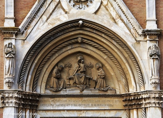 La basilica di San Francesco è tra le più importanti chiese di Siena, situata in piazza San Francesco. La chiesa fu eretta nel 1228-1255 circa e successivamente ingrandita tra il Trecento ed il Quattrocento con interventi che videro la trasformazione del primitivo edificio romanico nell'immensa struttura gotica attuale. L'edificio presenta una pianta a croce egizia con unica navata coperta a capriate e cappelle voltate a crociera nel transetto, seguendo il semplificato modello architettonico degli ordini mendicanti, che mirava a creare un ambiente di estese dimensioni, estremamente adatto alla predicazione di una vasta folla di fedeli. In seguito ad un incendio del 1655 l'ambiente interno è cambiato molto rispetto al passato, appare quasi disadorno, nonostante la recente ricollocazione dei dipinti originariamente ubicati negli altari barocchi demoliti nel XIX secolo. Anche la facciata a capanna, affiancata dal campanile eretto nel 1763, risale ad una operazione di restauro neogotico in conseguenza del quale furono eliminate le tracce della decorazione marmorea duecentesca e il portale quattrocentesco, sostituendo quest'ultimo con quello cuspidato odierno e decorando il prospetto con statue.