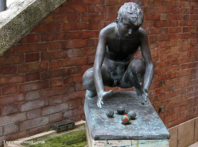 The fountain of the Dragon, is a boy crouching playing with marbles of which is painted with the colors of the district ii. The work was created in 1977 by sculptor Vico Consorti. The appeal to the district, besides the color of the ball comes the inscription "Contrada's love for the art of Vico Consorti dragaioli that relies on the memory of the great Priors born Mario Magnets and Albert Smith" on the fountain itself.