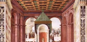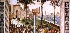 Una delle scene di giustizia romana affrescata sul soffitto della Sala del Concistoro del ...
