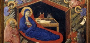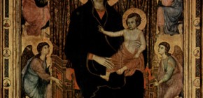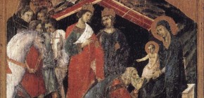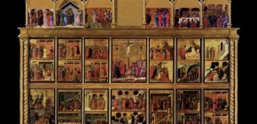 Maestà, pala d'altare di fronte Duomo di Siena,tempera ad olio, 43 × 46 cm....