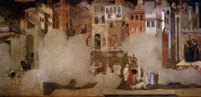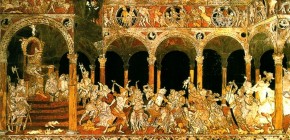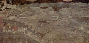 Nell'affresco venne rappresentato il paesaggio rurale ed urbano, quasi assoluta novità nel...