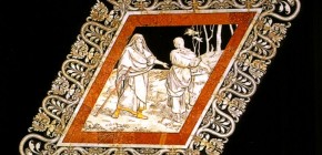 022 Tarsia pavimentale dell'Esagono centrale - Elia incontra la vedova nel bosco