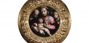 Olio su tavola, dimensioni: 181 x 176 cm "La Sacra Famiglia con San Leonardo" &...