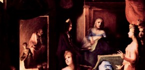 In questa Allegoria la Giustizia è seduta in trono sulla sinistra, con una grande bilancia...