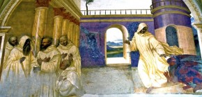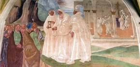31 - Come Benedetto appare a due monaci lontani e loro disegna la costruzione di uno monastero