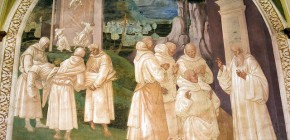 24 - Come Benedetto resuscita lo monacello cui era caduto lo muro addosso