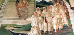 33 - Come Benedetto fa portare il corpo di Cristo sopra al monaco che la terra non voleva ricevere