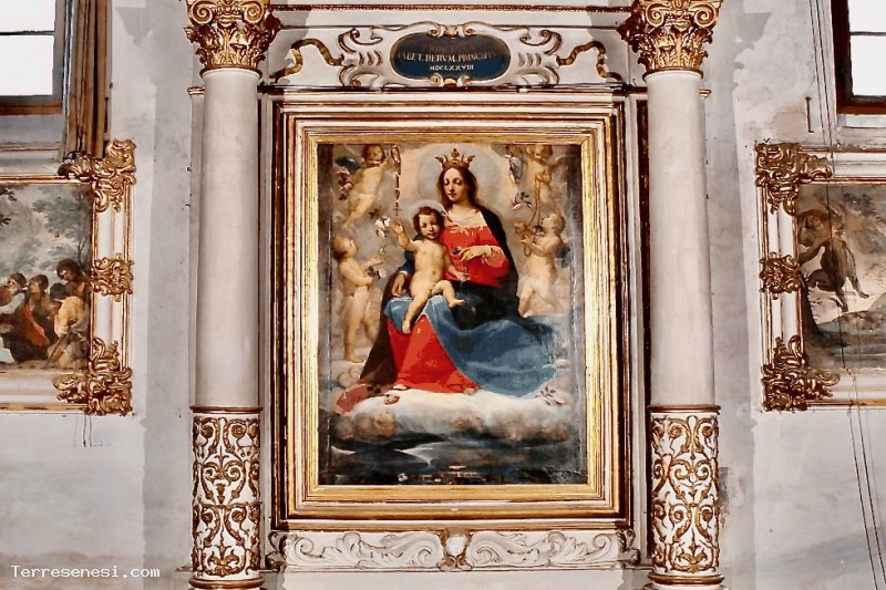 Sull'altare maggiore si vede la grande tela con La Madonna, il Bambino e Santi iniziata da Francesco Vanni nel 1610, poi continuata da Ventura Salimbeni e conclusa da Sebastiano Folli nel 1614.