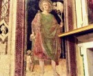 Testimoni della decorazione quattrocentesca sono i due riquadri affrescati nella parete sinistra interna.