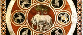 012 Tarsia pavim. della navata centrale - Lupa senese e simboli città alleate Siena