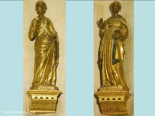 le sculture in legno intagliato, policromo e dorato della Vergine annunciata e dell’Arcangelo Gabriele, opere di Francesco di Valdambrino, che le eseguì nei primi anni del XV secolo, si trovano Lungo la navata, nei primi due pilastri che sostengono la volta del Duomo Poliziano. Le due statue, inizialmente collocate nella facciata esterna del Santuario della Madonna della Querce, sono state soggette a numerosi interventi di restauro che ne hanno piuttosto pesantemente alterato l’aspetto originario. Sia i colori, che la doratura attuale, sono frutto dell'ultimo restauro avvenuto negli anni trentadel secolo scorso