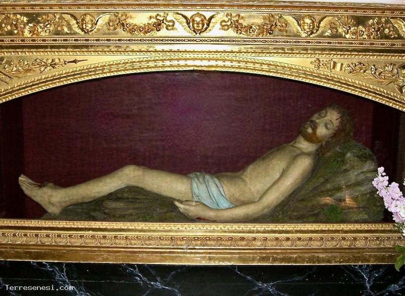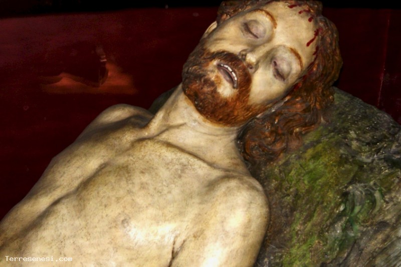 Infatti la sera del Venerdì Santo questa scultura viene portata in processione per le vie del paese, seguita dalla statua della Madonna addolorata.