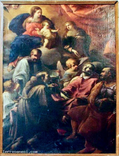 Tale attribuzione è supportata da calzanti raffronti con opere del pittore senese come la tela raffigurante la "Madonna con Bambino, San Filippo e San Giacomo, conservata nella chiesa romana di San Lorenzo in Miranda, oppure con la "Morte di San Tommaso da Villanova" nella collegiata di Ariccia e con "San Francesco in meditazione davanti al Crocifisso" della Collezione Chigi Saracini di Siena