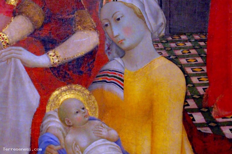 In questo polittico della “Natività della Vergine” è rappresentato un ambiente domestico della Siena di allora, con una buona dose di fantasia che rende la realtà quotidiana ancora più fiabesca. Una sorta di “Buon Governo” della famiglia, dove tutto è documentato dettagliatamente e sta esattamente al suo posto: ricchi, poveri, servi, infanti e visitanti.
