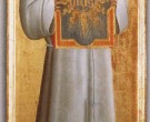 Dipinto su tavola con fondo oro. Raffigurato un San Bernrdino dalla figura esile e sofferta che tiene in mano una tavoletta con il nome di Gesù.