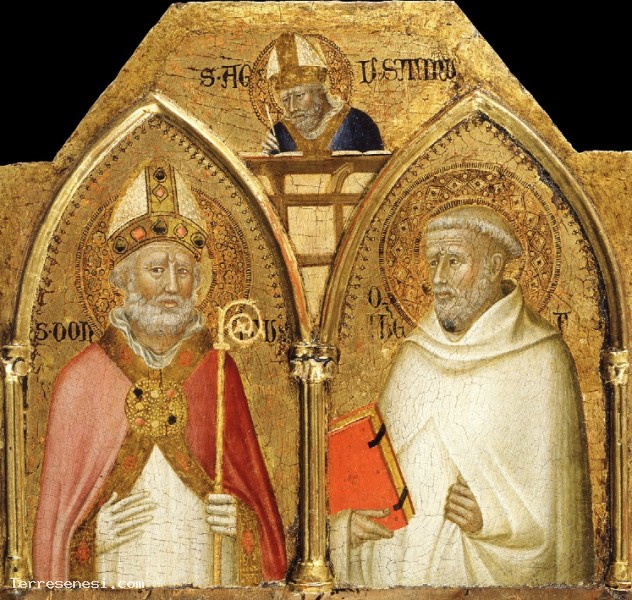 La raffigurazione di sant'Agostino, indicato con la scrittura gotica S. AGUSTINUS, si trova nella cuspide di un polittico conservato nella Collezione Salini al Castello Gallico di Asciano. In precedenza l'opera è stata segnalata presso la Collezione Briganti a Roma.